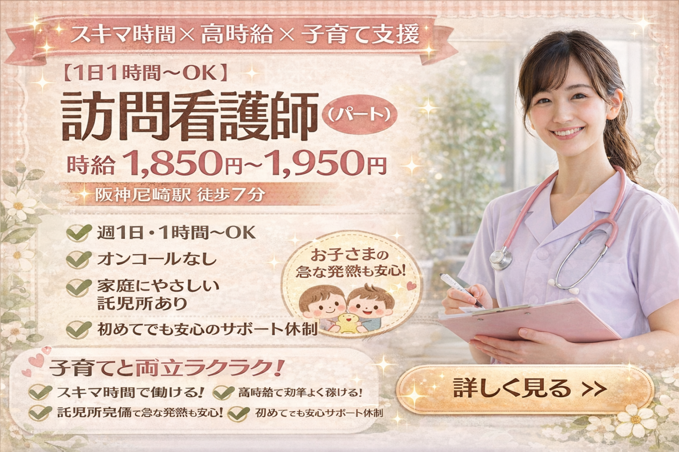 【1日1時間~OK】訪問看護師(パート)|時給1,850円~