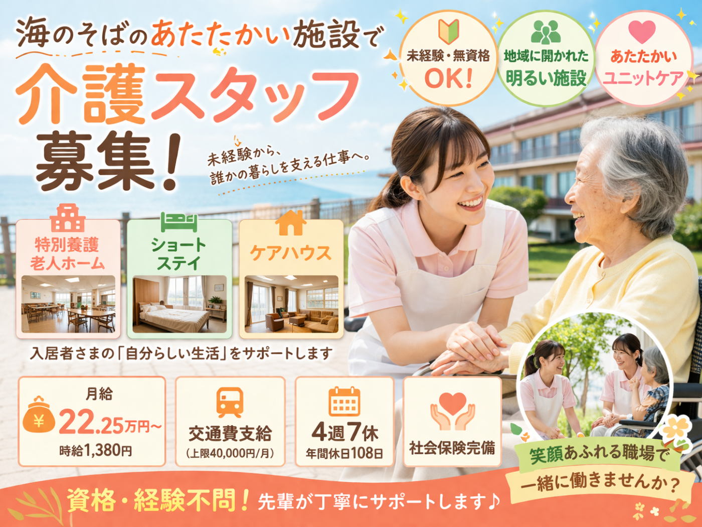 - 未経験OKの介護スタッフ|海のそばの施設でゆったり働ける環境