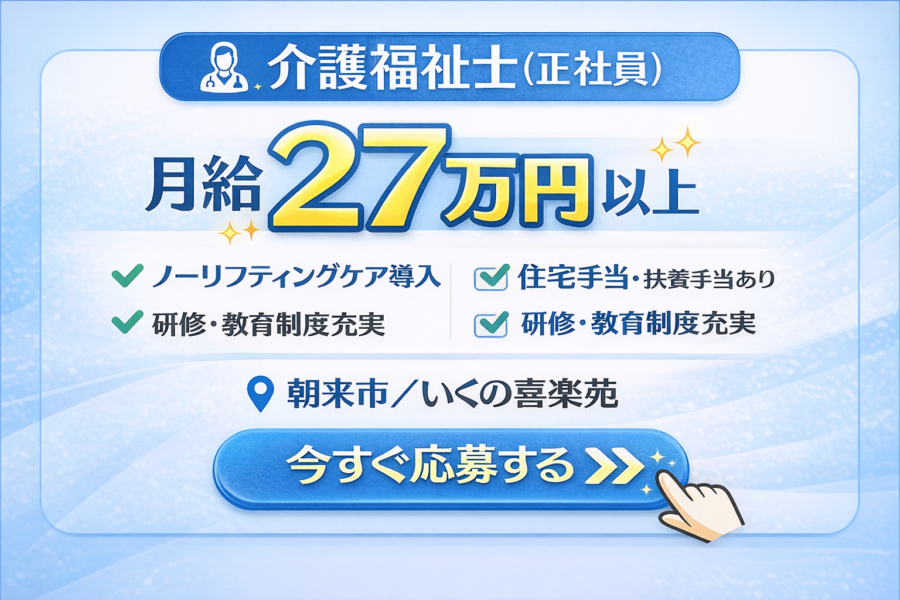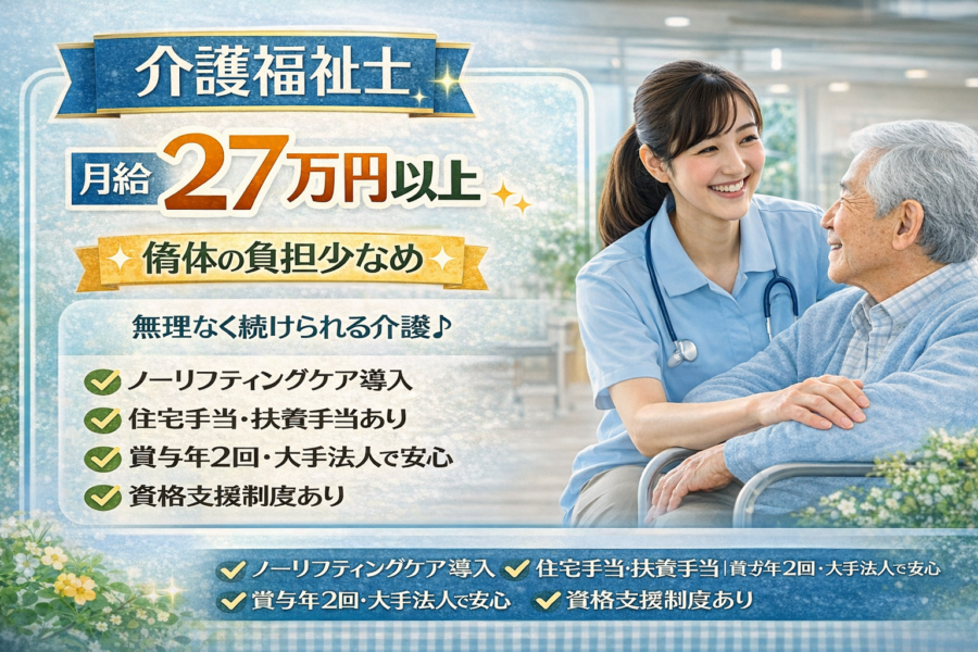 【月給27万円以上】介護福祉士募集|負担少ない介護◎