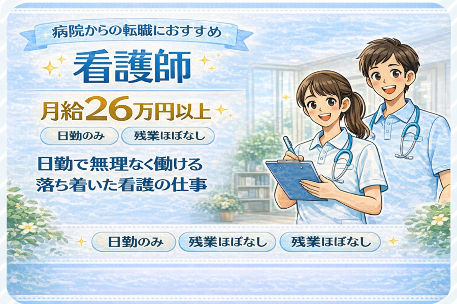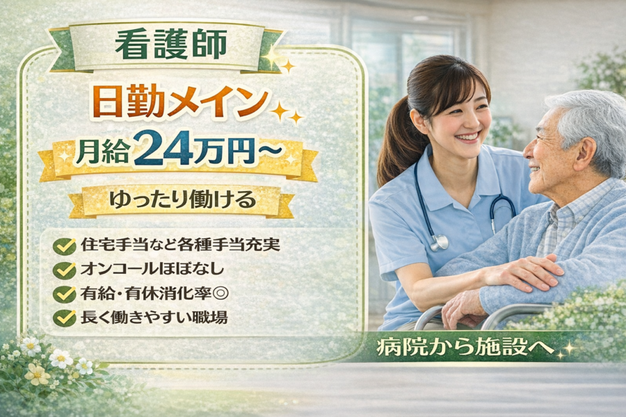 日勤メインの看護師|月給26万円以上×残業ほぼなし
