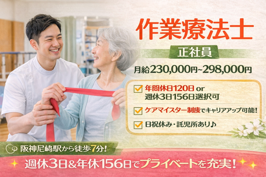 【作業療法士|正社員】月給23万円~/年間休日120日・週休3日選択可/託児所あり