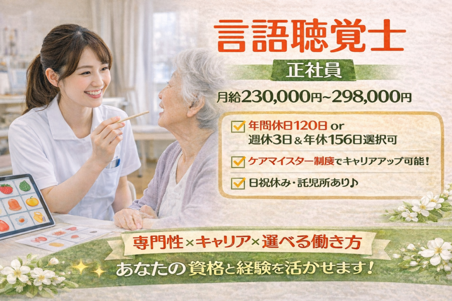 【言語聴覚士|正社員】月給23万円~/年間休日120日・週休3日選択可/託児所あり