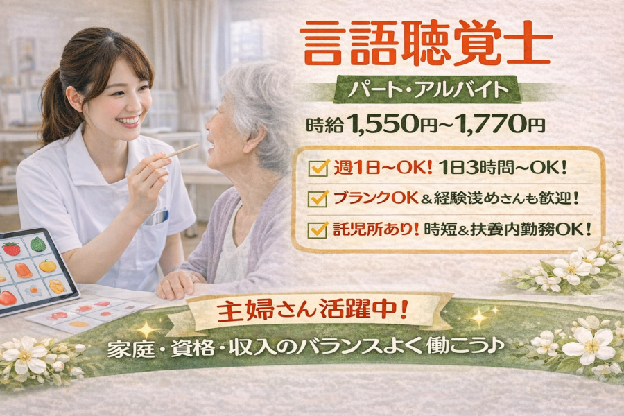 【言語聴覚士|パート・アルバイト】時給1,550円~/週1日~OK/1日3時間~OK