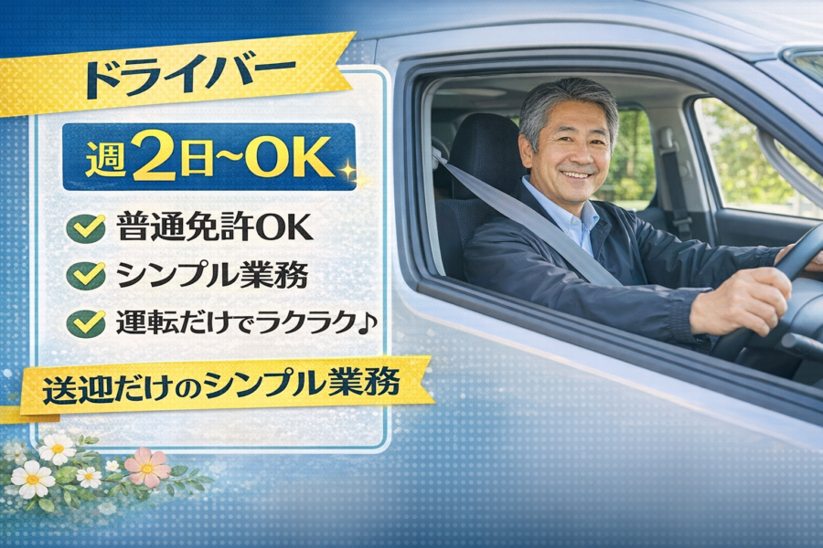 デイサービススタッフ!日曜日休み+他曜日1日!固定時間勤務で予定も立てやすい!自転車・バイク・車通勤可!