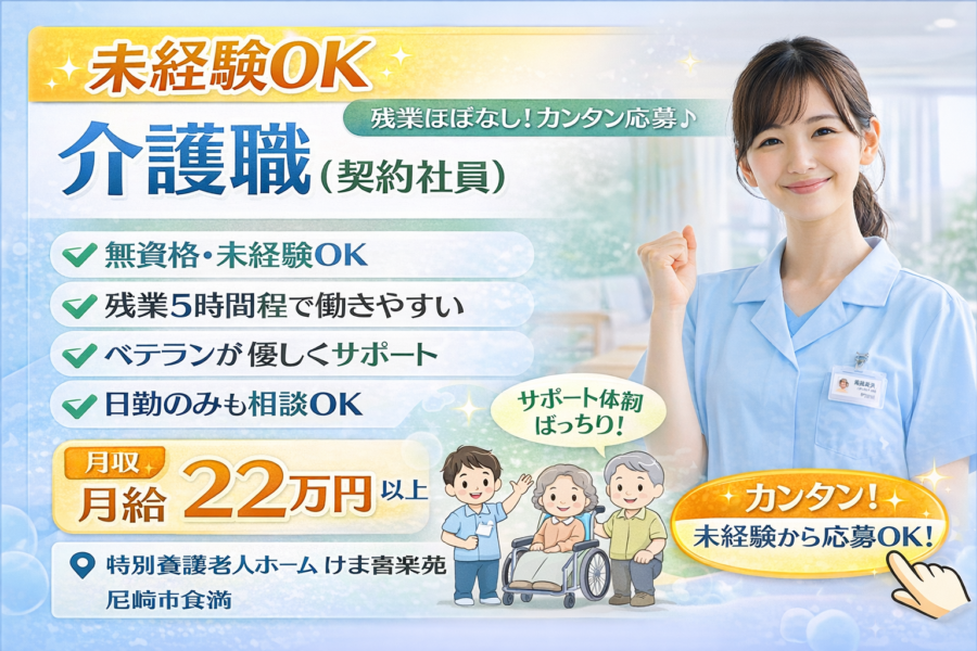 【未経験OK】介護職(契約社員)|残業ほぼなし