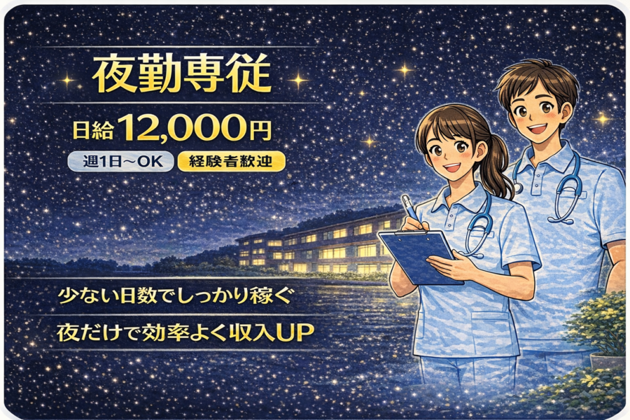 夜勤専従の介護スタッフ|日給12,000円×週1日~OK