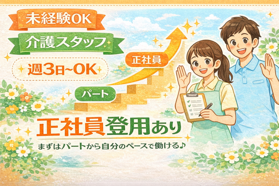 週3日~OKの介護スタッフ|未経験歓迎×正社員登用あり